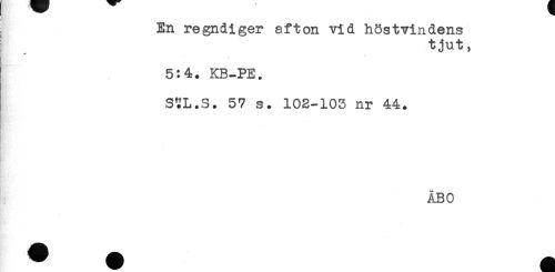 //// En regndiger afton vid höstvindens //// tjut, //// 5:4. KB-PE. //// STL.S. 57 s. 102-103 nr 44. //// ÅBO ////