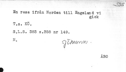 //// En resa ifrån Norden till Engeland vi //// gick //// T.s. KÖ. //// *< F - //// S.L.S, 385 s.358 nr 149. //// ÅBO //// ** ////