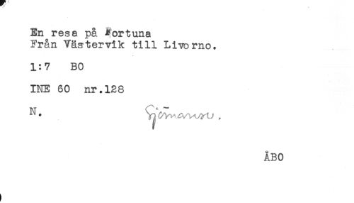 //// En resa på ^'ortuna //// Från Västervik till Livorno. //// 1:7 BO //// INE 60 nr.128 //// ÅBO ////