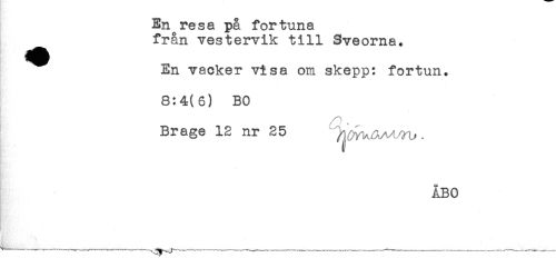 //// En resa på fortuna //// från vestervik till Sveoma. //// ^^ En vacker visa om skepp: fortun. //// 8:4(6) BO //// i //// Brage 12 nr 25 //// ABO //// -- -- -----,-"----'-----'----- ////