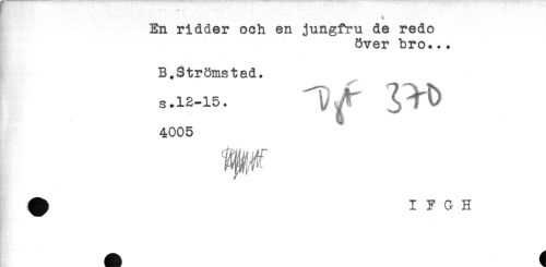 //// En ridder och en jungfru de redo //// över bro... //// . //// B.Strömstad. //// s.12-15. "i. ^ ' //// 4005 //// ^ I F G H ////
