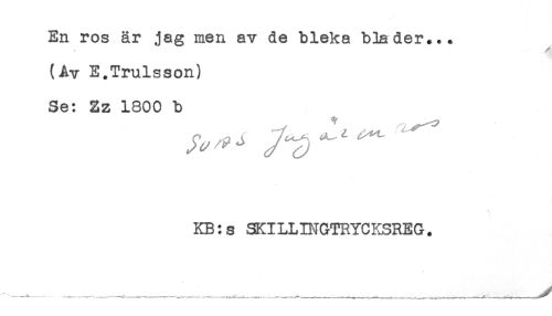 //// En ros är jag men av de bleka blader... //// (Av E.Trulsson) //// Se: Zz 1800 b //// KB:s SKILLINGTRYCKSREG. //// -----^^ - ....----- ----^-,-----v----- ----<----____.i, ____. -____„ ..-_ .---'--, , ,, - ////