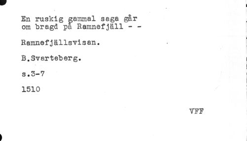 //// En ruskig gammal saga går //// om bragd pa Ramnefjäll - - //// ! //// Ramnefjällsvisan. //// B.Svarteberg. //// * //// s.3-7 //// 1510 //// VFF ////