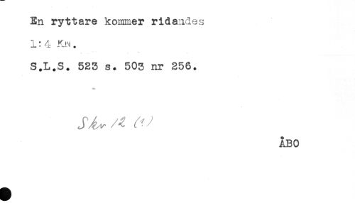 //// En ryttare kommer ridandes //// 1:4 KiN. //// . ** . //// S.L.S. 523 s. 503 nr 256. //// J ^ , ^ r.^ .' //// ÅBO ////
