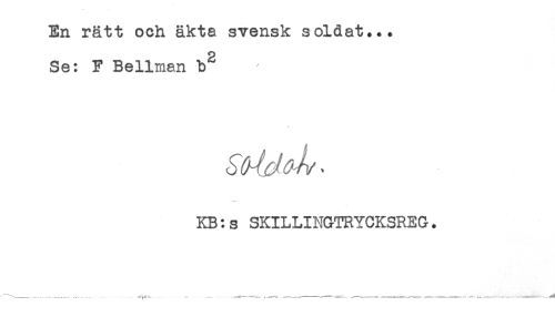 //// En rätt och äkta svensk soldat... //// Se: F Bellman b^ //// - '-A //// KB:s SKILLINGTRYCKSREG. ////