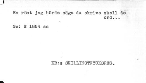 //// En röst jag hörde säga du skriva skall de //// ord... //// * //// Se: E 1824 ss //// i //// < //// - //// KB:s SKILLINGTRYCKSREG. //// t j //// i //// i //// ) ////