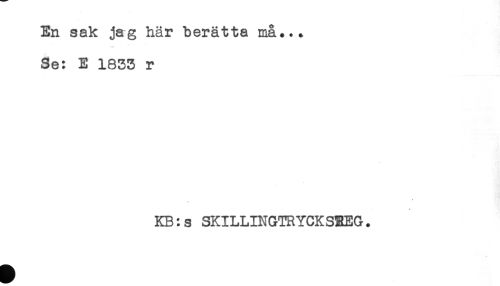 //// En sak jag här berätta må... //// Se: E 1835 r //// KB:s SKILLINGTRYCKSREG. ////
