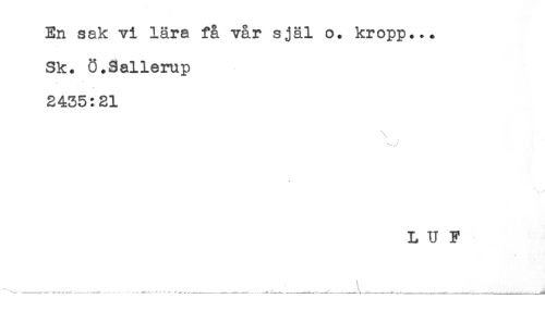 //// En sak vi lära få vår själ o. kropp... //// Sk. Ö.Sallerup //// 2435:21 //// L U F ////