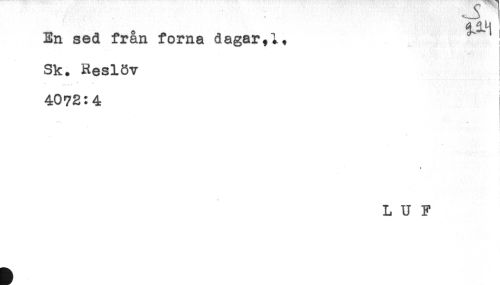 //// En sed från forna dagar,1. //// Sk. Reslöv //// * * //// 4072:4 //// * //// < //// L U F ////