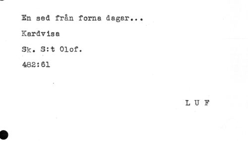 //// En sed från forna dagar... //// Kardvisa //// Sk. S:t Olof. //// < * //// 482:61 //// L U F ////