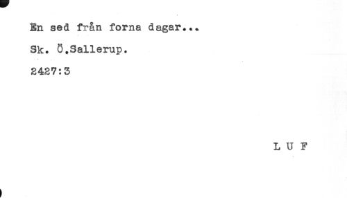 //// En sed från forna dagar*.* //// Sk. Ö.Sallerup. //// * //// 2427:3 //// L U F ////