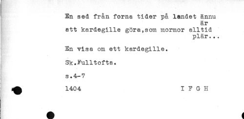 //// En sed från forna tider på landet ännu //// är //// ! att kardegille göra,som mormor alltid //// plär... //// En visa om ett kardegille. //// ' //// Sk.Fulltofta. //// . //// s.4-7 //// 1404 I F G H ////