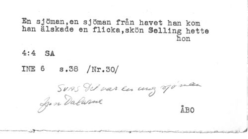 //// En sjöman,en sjöman fr&n havet han kom //// han älskade en flicka,skön Selling hette //// hon //// 4:4 SA //// L //// ) //// t //// INE 6 s.38 /Nr.30 //// /ABO ////