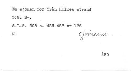 //// En sjöman for från Hilmes strand //// 3:8. Br. //// * *'**.. ... //// S.L.S. 508 s* 455-457 nr 178 //// f //// N. Q ^yn ^^^ . //// ÅBO ////