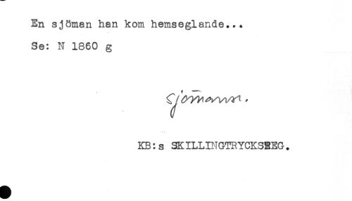 //// En sjöman han kom hemseglande... //// Se: N 1860 g //// - *. //// KB:s SKILLINGTRYCKSEEG. ////