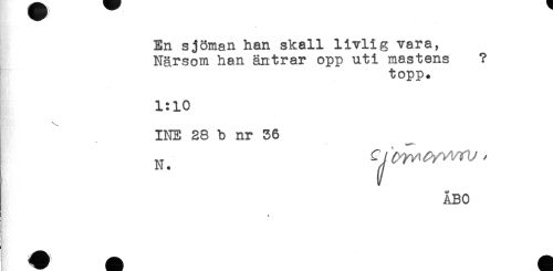 //// En sjöman han skall livlig vara, //// Närsom han äntrar opp uti mastens ? //// topp. //// 1:10 //// INE 28 b nr 36 //// ÅBO ////