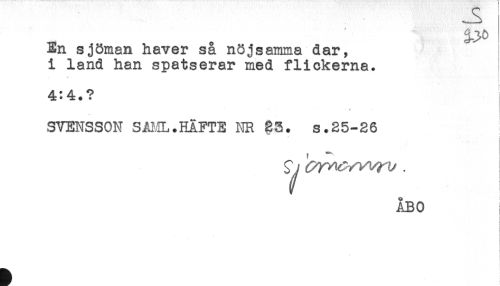 //// En sjöman haver så nöjsamma dar, //// i land han spatserar med flickerna. //// * ** ! //// 4:4.? //// ^ < //// SVENSSON S^,IL.HÄFTE NR 63. s.25-26 //// i //// ÅBO //// ! ////