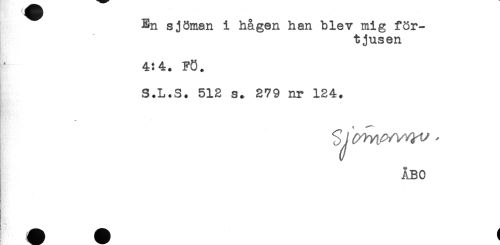 //// En sjöman i hågen han blev mig för- //// tjusen //// 4!4. FÖ. //// S.L.S. 512 s. 279 nr 124. //// * //// ÅBO ////