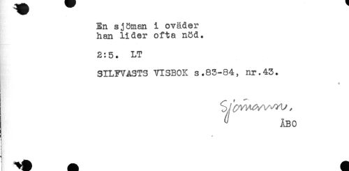 //// En sjöman i oväder //// han lider ofta nöd. //// 2:5. LT //// SILFVASTS VISBOK s.83-84, nr.45. //// ! //// ^ ÅBO ////