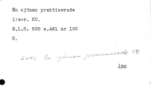 //// En sjöman praktiserade //// l:4+r. KO. //// ' . //// S.L.S. 508 s.461 nr 180 //// N. //// ÅBO ////