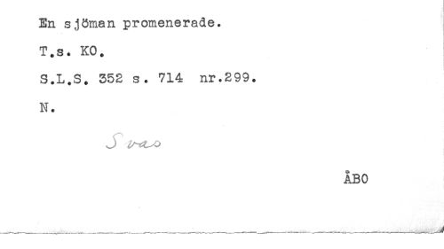 //// < //// En sjöman promenerade. //// T.s. KO. //// S.L.S. 352 s. 714 nr.299. //// N. //// ÅBO //// ___ ____ _ "....... ___ ...... ..... . ,, .._ . , ////
