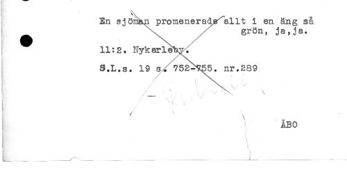 //// ! \ //// En sj öman promenerad^allt i en äng så //// t \ grön, ja,ja. //// 11:2 . Nykarlé^y^ //// S.L.s. 19 s^ 752^5. nr.289 //// t / \ \ \ //// i / " - . - //// "t*-'' " //// \ . ' //// ÅBO //// t' ' is //// , _. . ...... .... ....___ ____ ////