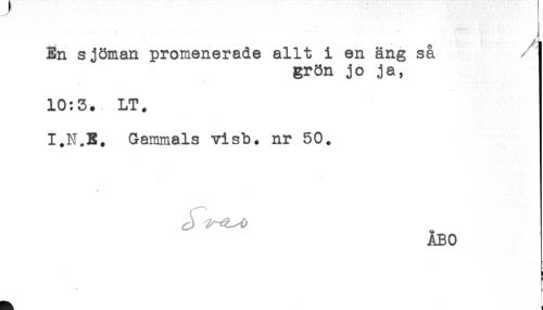 //// En sjöman promenerade allt i en äng så //// grön jo ja, //// 10:3. LT. //// I.N.E. Gammals visb. nr 50. //// v //// ÅBO //// ! //// < ////