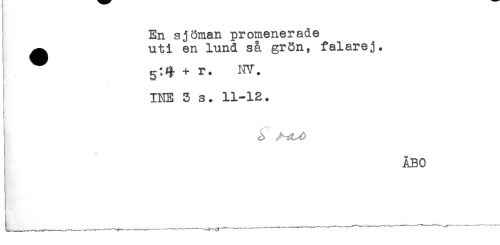 //// En sjöman promenerade //// ^ uti en lund så grön, falarej. //// + r. NV. //// INE 5 s. 11-12. //// ÅBO ////