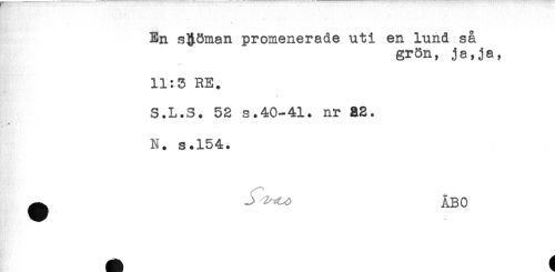 //// En s$8man promenerade uti en lund så //// grön, ja,ja, //// 11:3 RE. //// S.L.S. 52 s.40-41. nr 82. //// N. s.154. ////