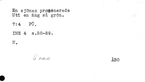 //// En sjöman proi^énerade //// Uti en äng så grön. //// .. //// 7:4 PO. //// < //// INE 4 s.28-29. //// N. //// ÅBO ////