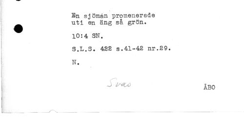 //// < //// En sjömän promenerade //// ^ uti en äng så grön. //// ' 10:4 SN. //// S.L.S. 432 s.41-42 nr.29. //// N. //// ! //// ! //// J^) ABO ////