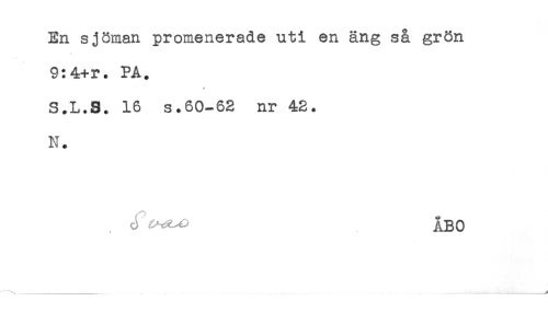 //// En sjöman promenerade uti en äng så grön //// 9:4+r. PA. //// S.L.S. 16 s.60-62 nr 42. //// N. //// o ÅBO ////