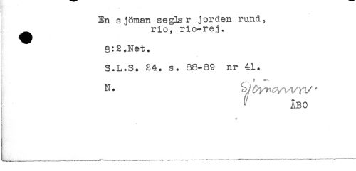 //// En sjöman seglar jorden rund, //// { rio, rio-rej. //// i //// ' ! //// S.L.S. 24. s. 88-89 nr 41. //// N. Sy^y^^^^vt/yv //// ÅB 0 ////
