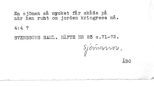 //// En sjöman så mycket får skåda på //// när han ruht om jorden kringresa må. //// 4:4 ? //// SVENSSONS SAML. HÄFTE NR 23 s.71-72. //// ^J-i ^ vy ^ , //// ÅBO //// _^ _ _____ _____--__. - ////