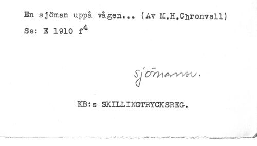 //// En sjöman uppå vågen... (Av M.H.Chronvall) //// Se: E 1910 f^ //// KB:s SKILLINGTRYCKSREG. ////