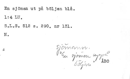 //// En sjöman ut på böljan blå. //// 1:4 LU. //// S.L.S. 512 s. 290. nr 131. //// N. //// ^ ÅBO ////