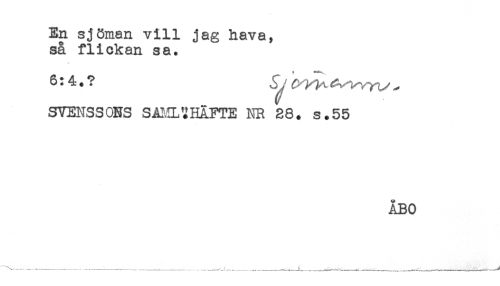 //// En sjöman vill jag hava, //// så flickan sa. //// SVENSSONS SAHLYHÄFTE NR 28. s.55 //// ÅBO ////