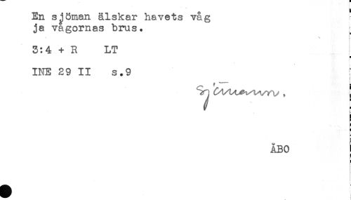 //// En sjöman älskar havets våg //// ja vagornas brus. //// < ^ //// 3:4 + R LT //// ' //// INE 29 II s.9 //// i //// - //// i //// ÅBO i //// ) //// r //// ) //// ! ////