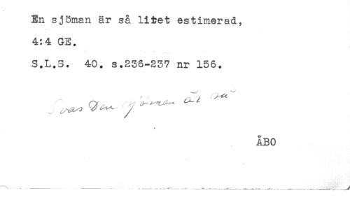 //// En sjöman är så litet estimerad, //// 4:4 GE. //// * - * . w //// S.L.S. 40. s.236-237 nr 156. //// ._/ ^ //// AB 0 ////