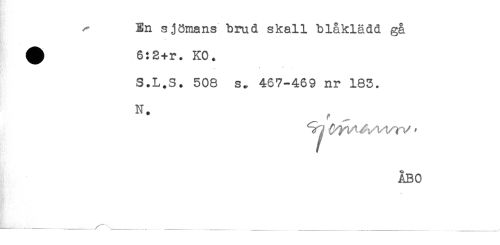 //// En sjömans brud skall blåklädd gå //// ^ 6:2+r. KO. //// S.L.S. 508 s. 467-469 nr 183. //// N* //// ÅBO ////