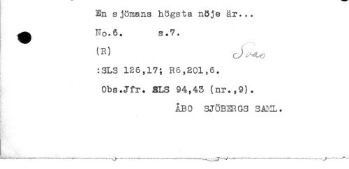 //// En sjömans högsta nöje är... //// ^ No.6. s.7. //// (R) //// :SLS 128,17; R6,201,6. //// - - - -. //// * . * //// : //// Obs.Jfr. SLS 94,43 (nr.,9). //// ÅBO SJÖBERGS SAML. //// - //// . . *. ^ ////