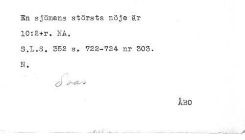 //// En sjömans största nöje är //// 10:2+r. NA. //// S.L.S. 352 s. 722-724 nr 305. //// N. //// ÅBO //// * -----'-----A^ i-Ln -----.. ---,---___i_____^ ////