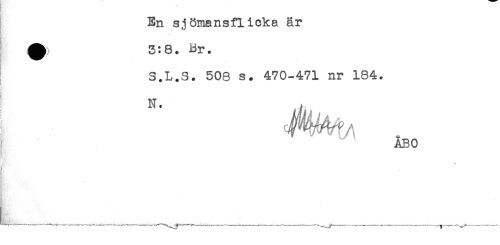 //// En sjömansflicka är //// ^ 3:8. Br. //// S.L.S. 508 s. 470-471 nr 184. //// ! //// ' ÅBO //// L ___^____ ////