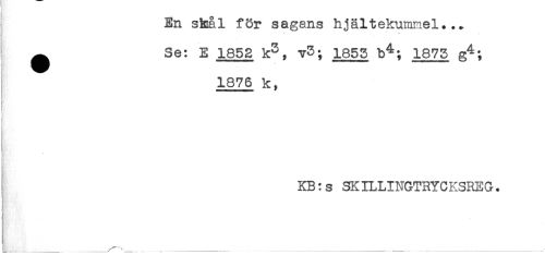 //// En skål för sagans hjältekummel..^ //// ^ Se: E 1852 k^, v3; 1855 b^; 1875 g4; //// 1876 k, //// KB:s SKILLINGTRYCKSREG. //// ! . //// : //// Bä...:_____... ////