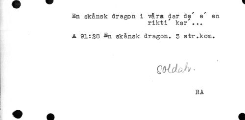 //// En skånsk dragon i våra dar de" e" en //// riktl/ kar".,. //// A 91:28 -Bin skånsk dragon. 3 str .kom. //// - //// Ht ////