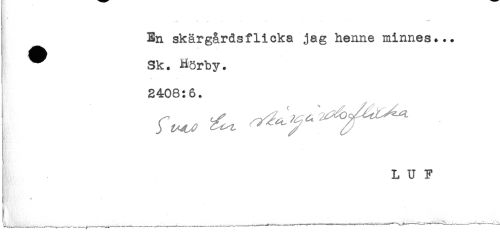 //// , . - . .- - //// En skärgårdsflicka jag henne minnes... //// ^ Sk. Hörby. //// - . //// < //// ! //// 2408:6. //// L U F ////