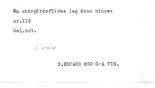 //// En skärgårdsflicka jag ännu minnes //// nr.119 //// Mel.not. //// r'„ , < . ^ //// S.EDUARD 200 G:A VIS. ////