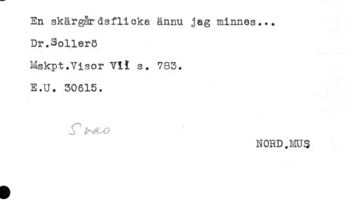 //// En skärgårdsflicka ännu jag minnes... //// Dr.Sollerö //// Mskpt.Visor Vli s. 783. //// E.U. 30615. //// jT //// NORD.MUS ////