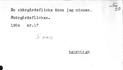//// En skärgårdsflicka ännu jag minnes. //// Skärgårdsflickan. //// 1904 nr.17 //// i //// , ' t //// . i //// i //// -S //// DALKULLAN ////