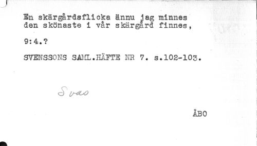 //// En skärgårdsflicka ännu ^ag minnes //// den skönaste i vår skärgård finnes, //// i //// * //// 9:4.? //// t //// i //// SVENSSONS SAHL.HÄFTE NR 7. s.102-103. //// i //// i ////